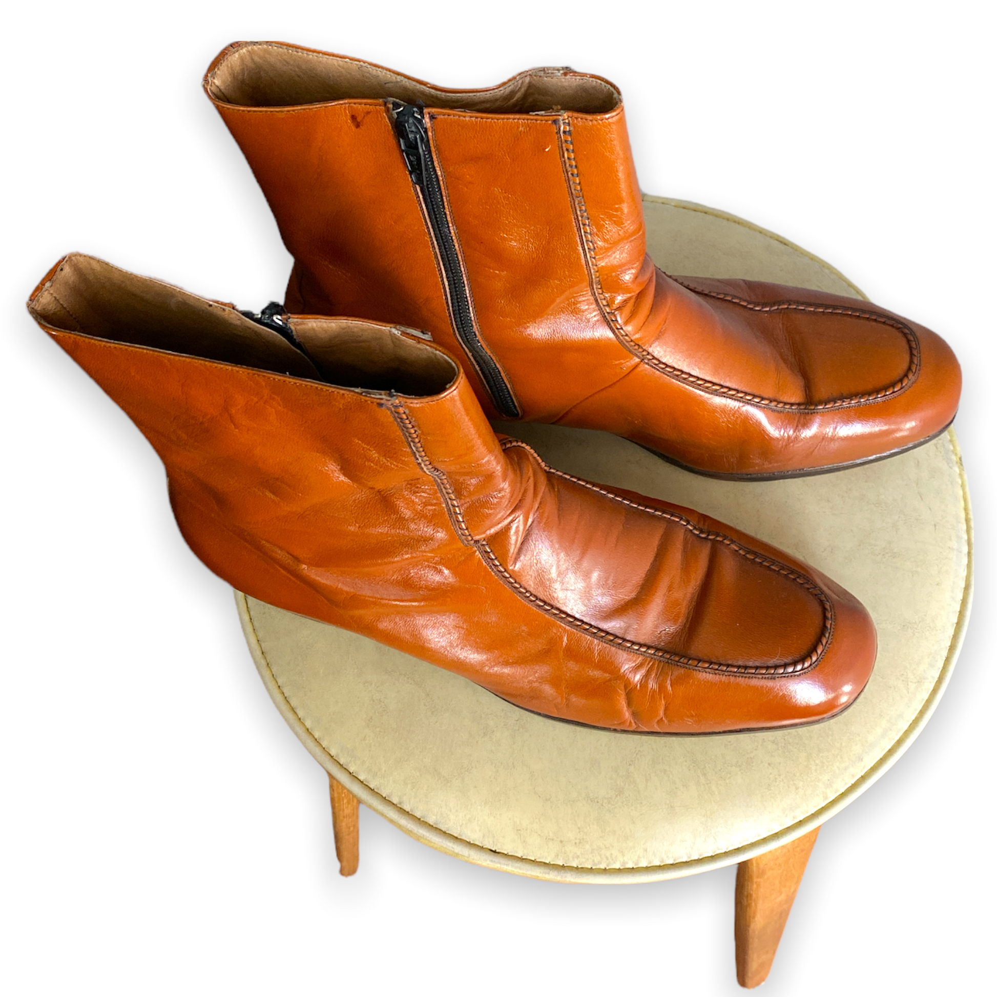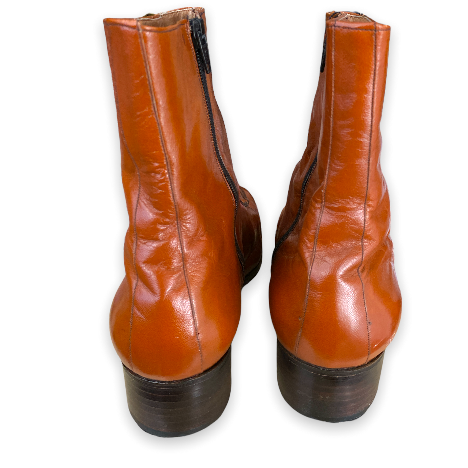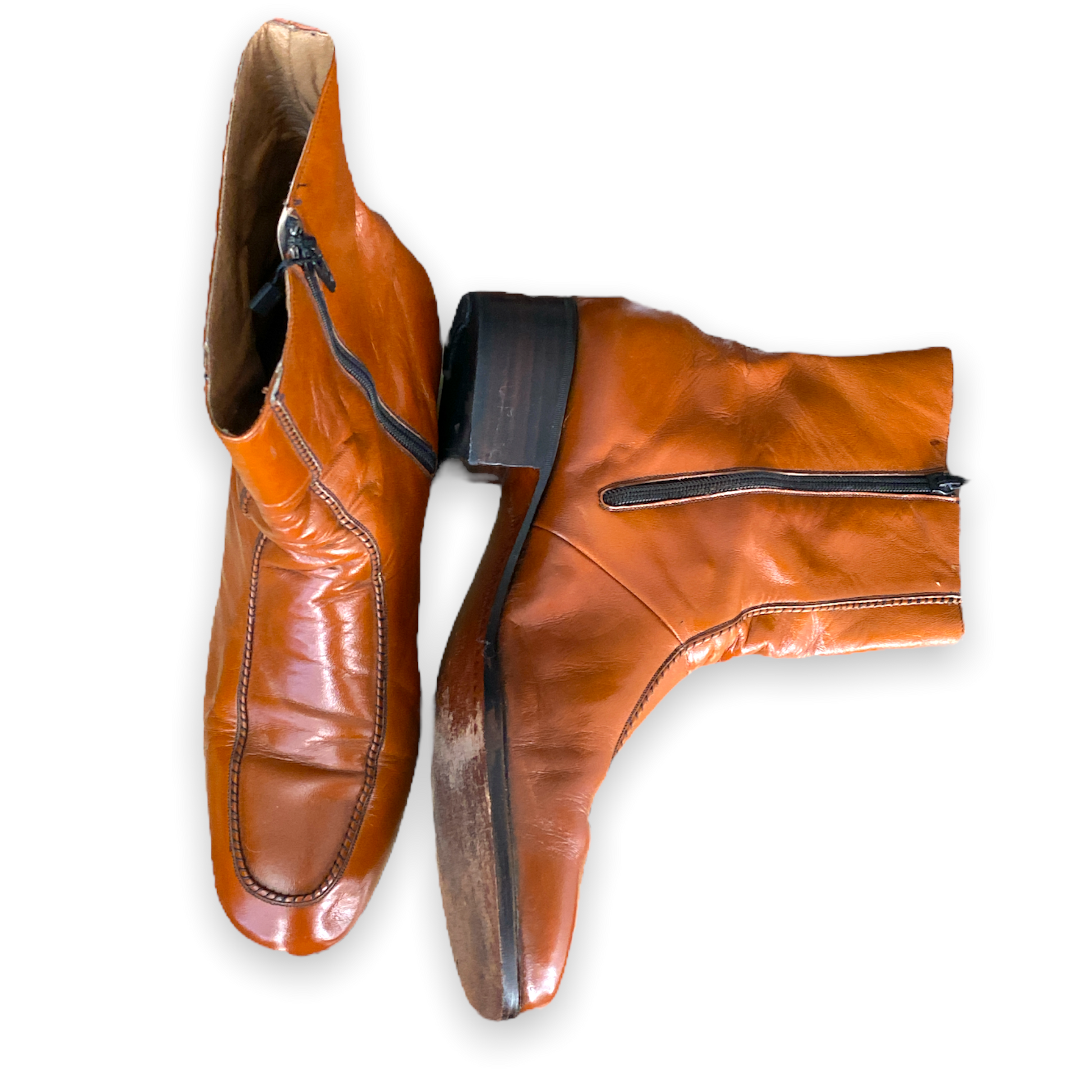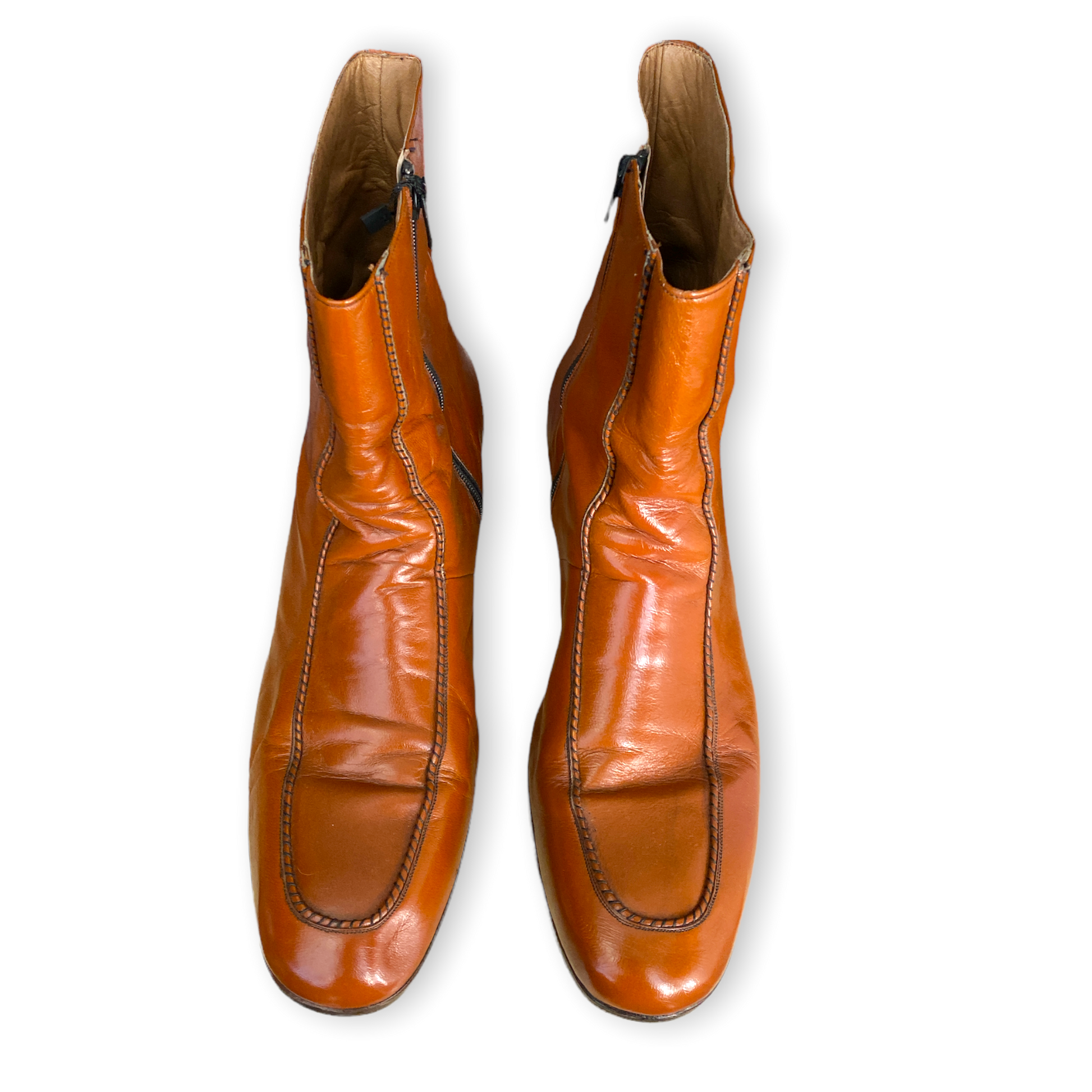 Light wear around the heels. Small mark at the top of the inner side of the left boot.