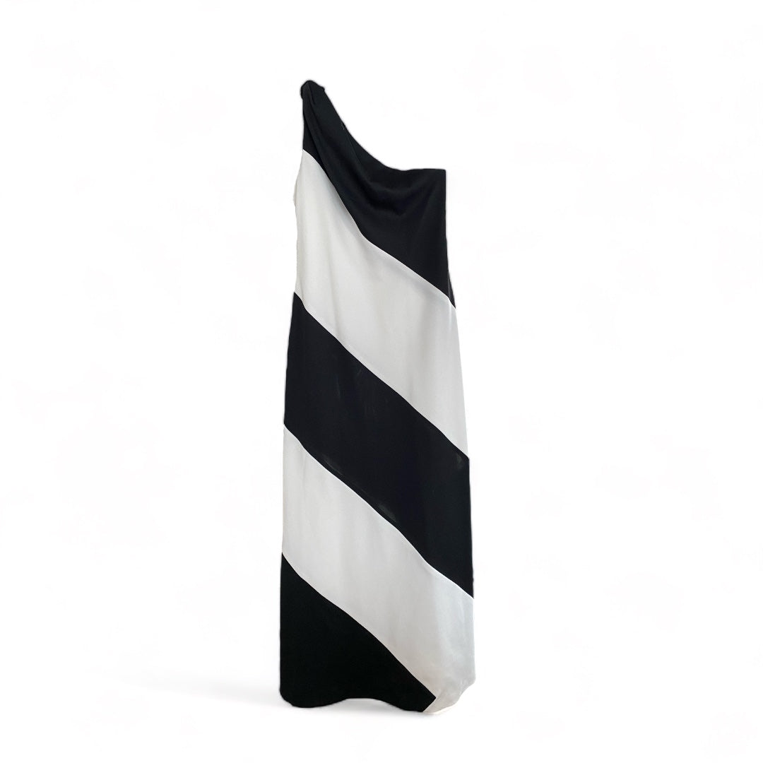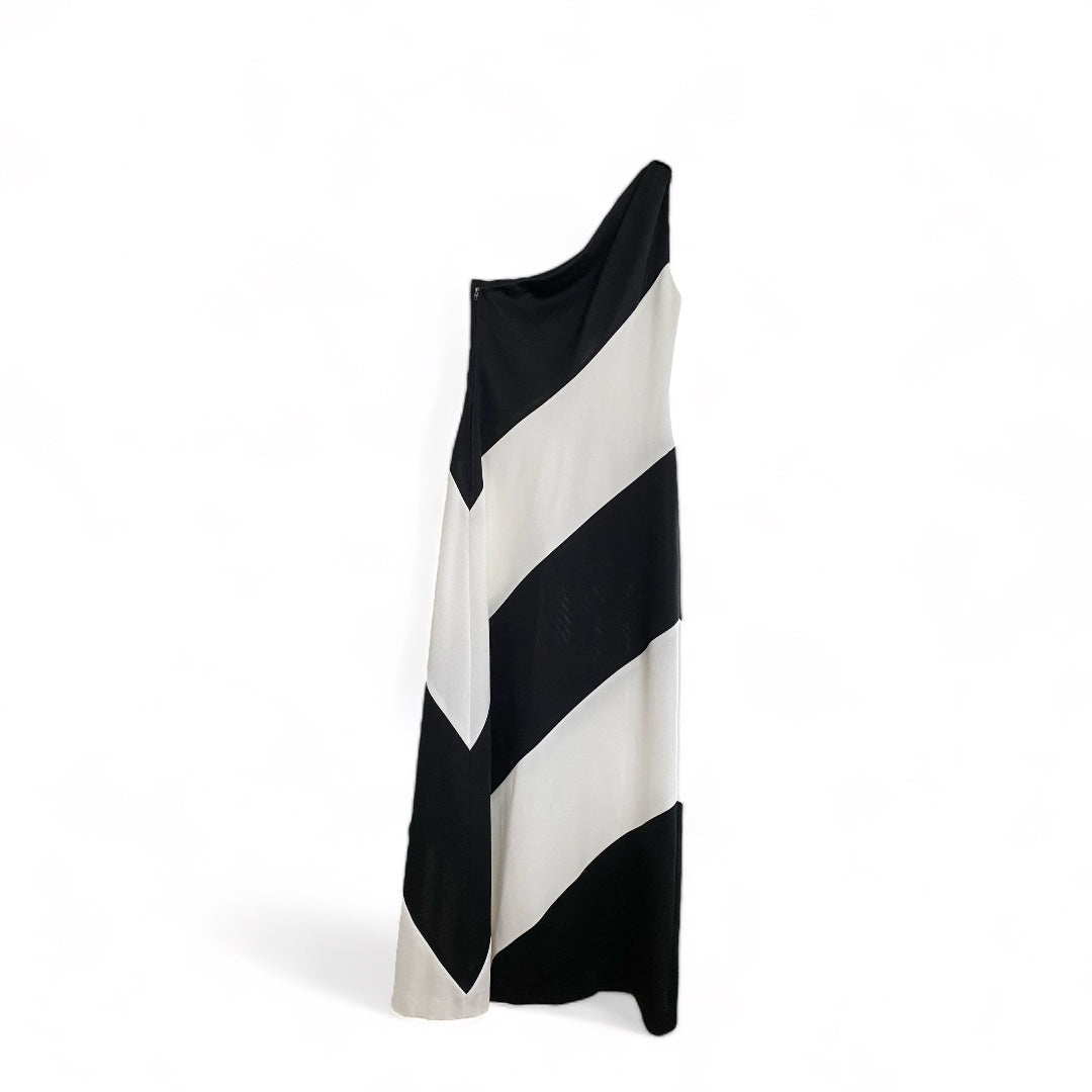 60s Asymmetrical Black White Maxi Dress