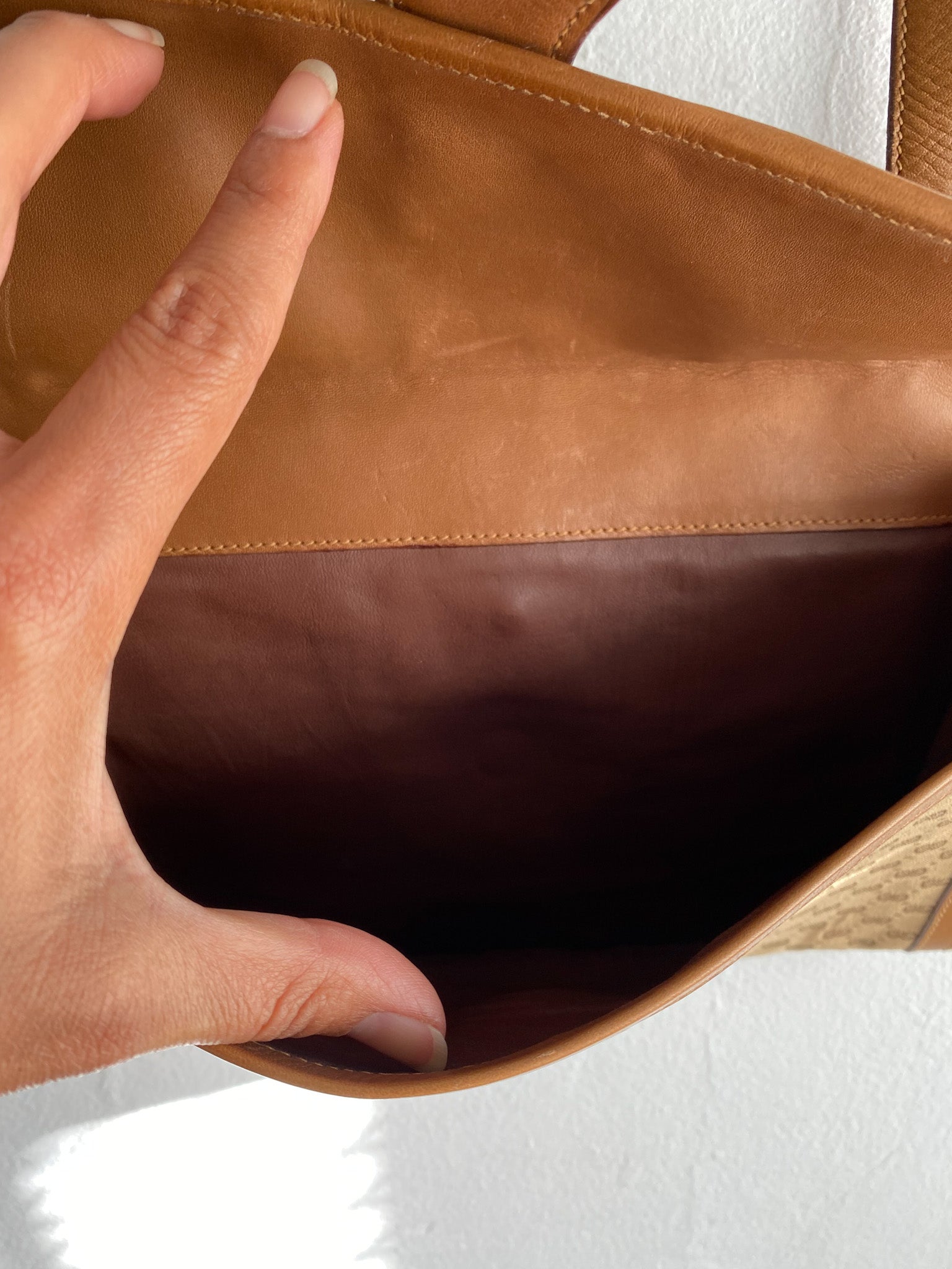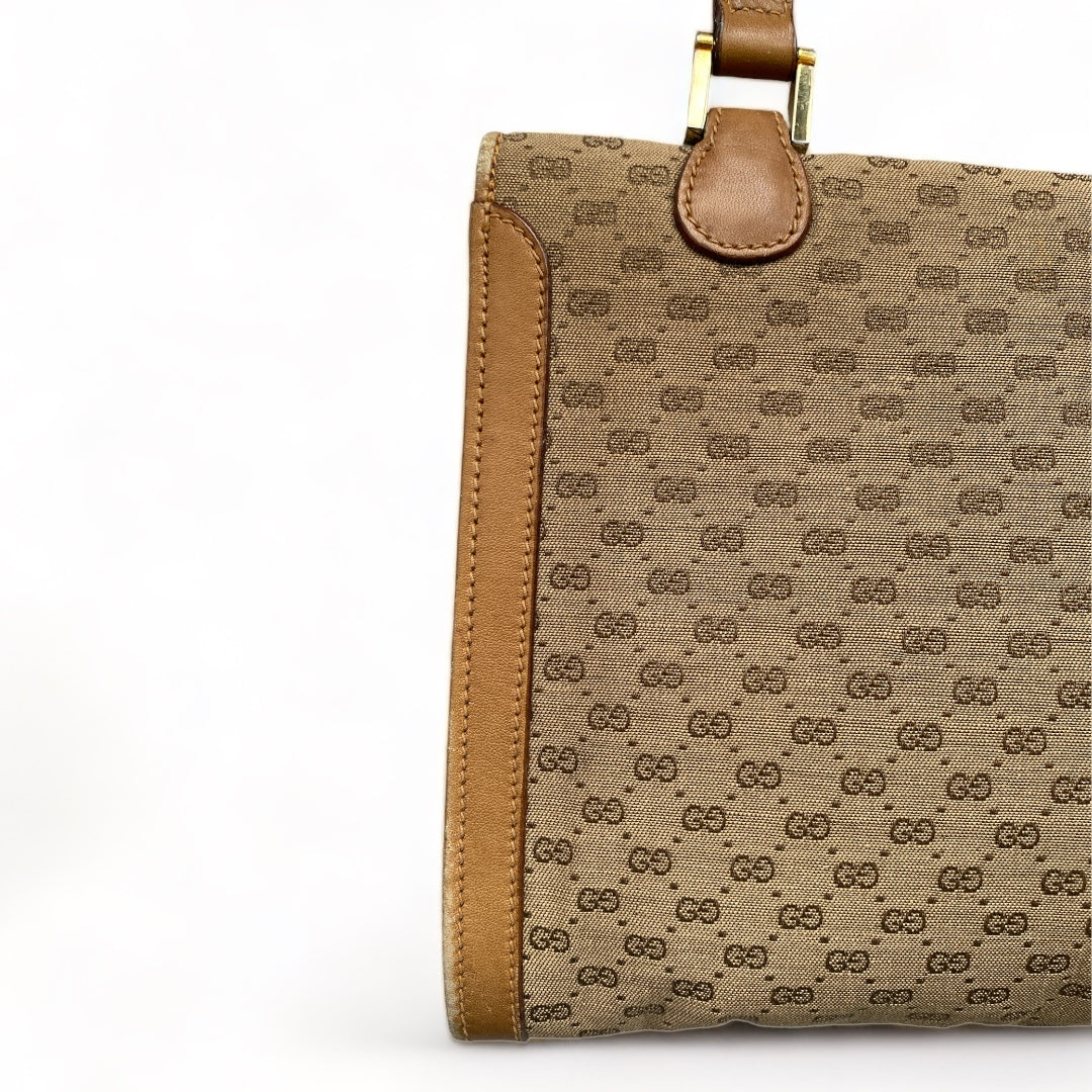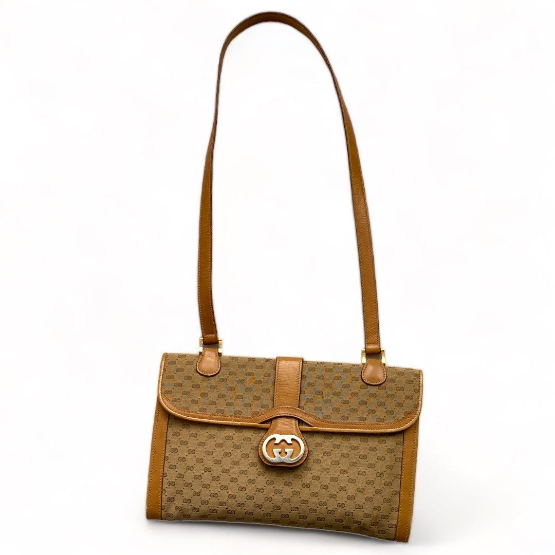 Beautiful Gucci envelope bag from the 1970s. Monogram. Leather lining, trim, and handle