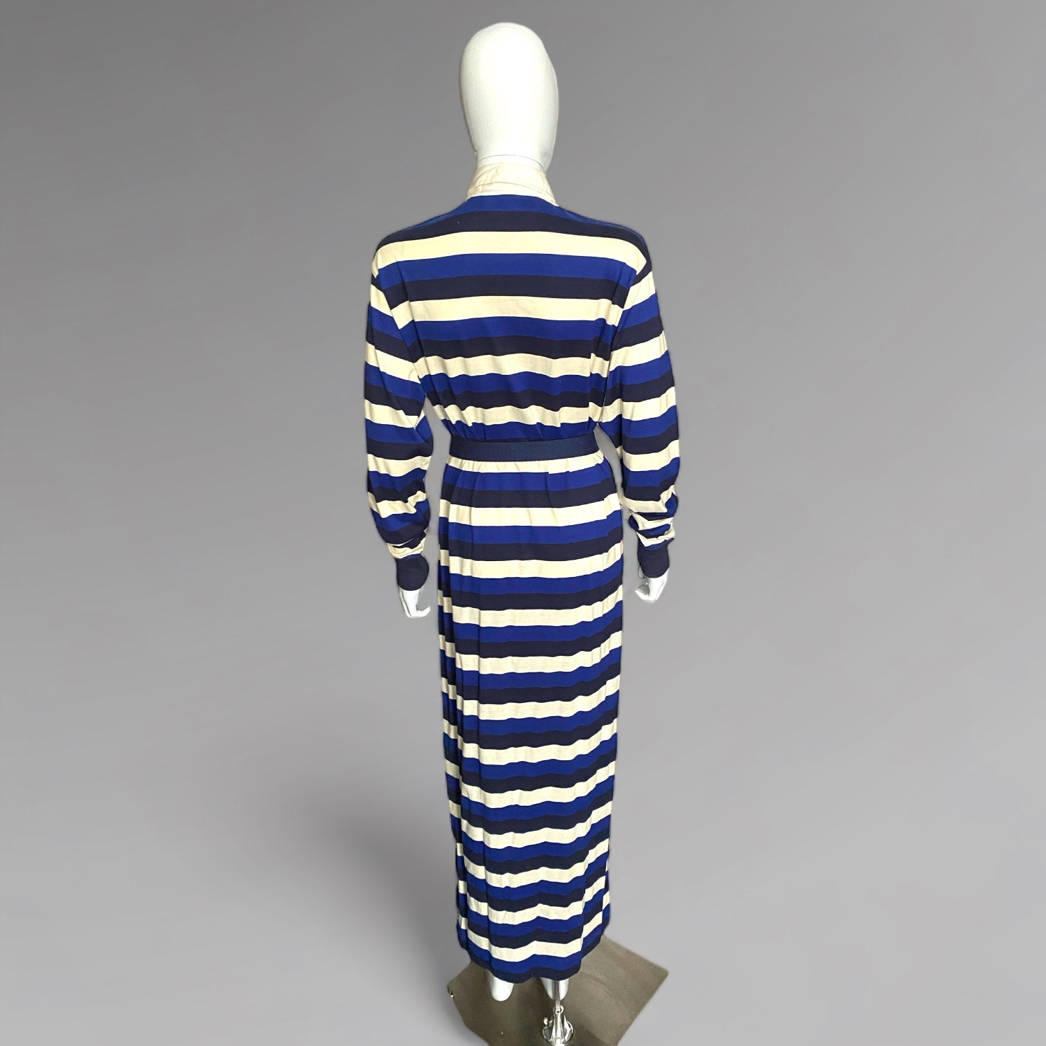 1990s Polo Ralph Lauren maxi dress in bold blue and off white stripes. Comes with a belt. 100% cotton