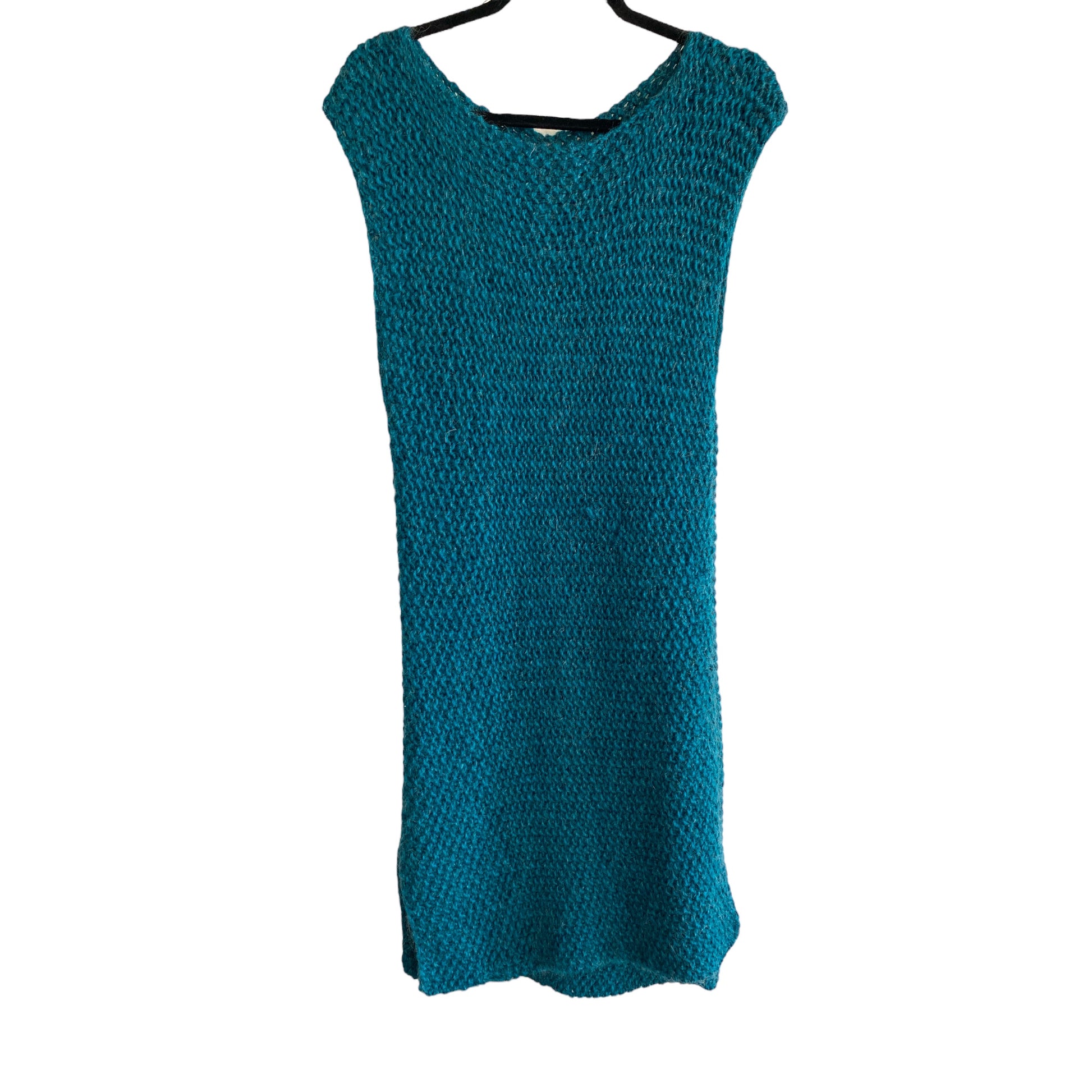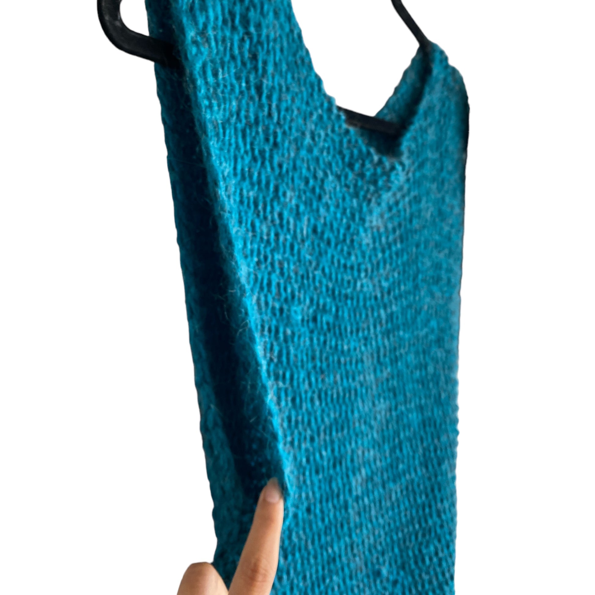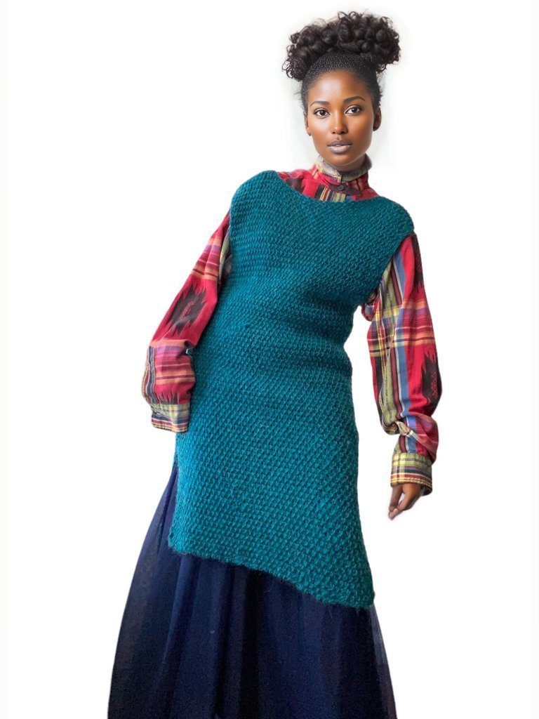 Soft fuzzy knit. Wide armholes. Side slits. Wide collar.