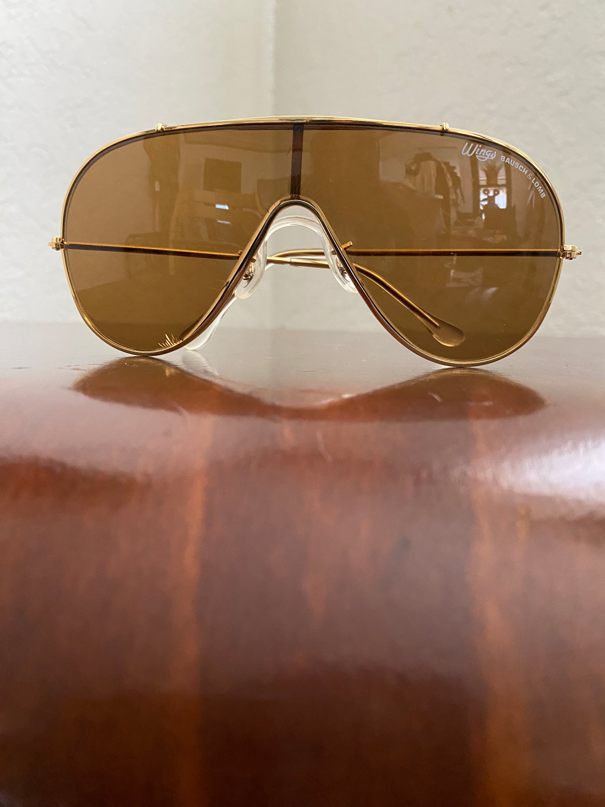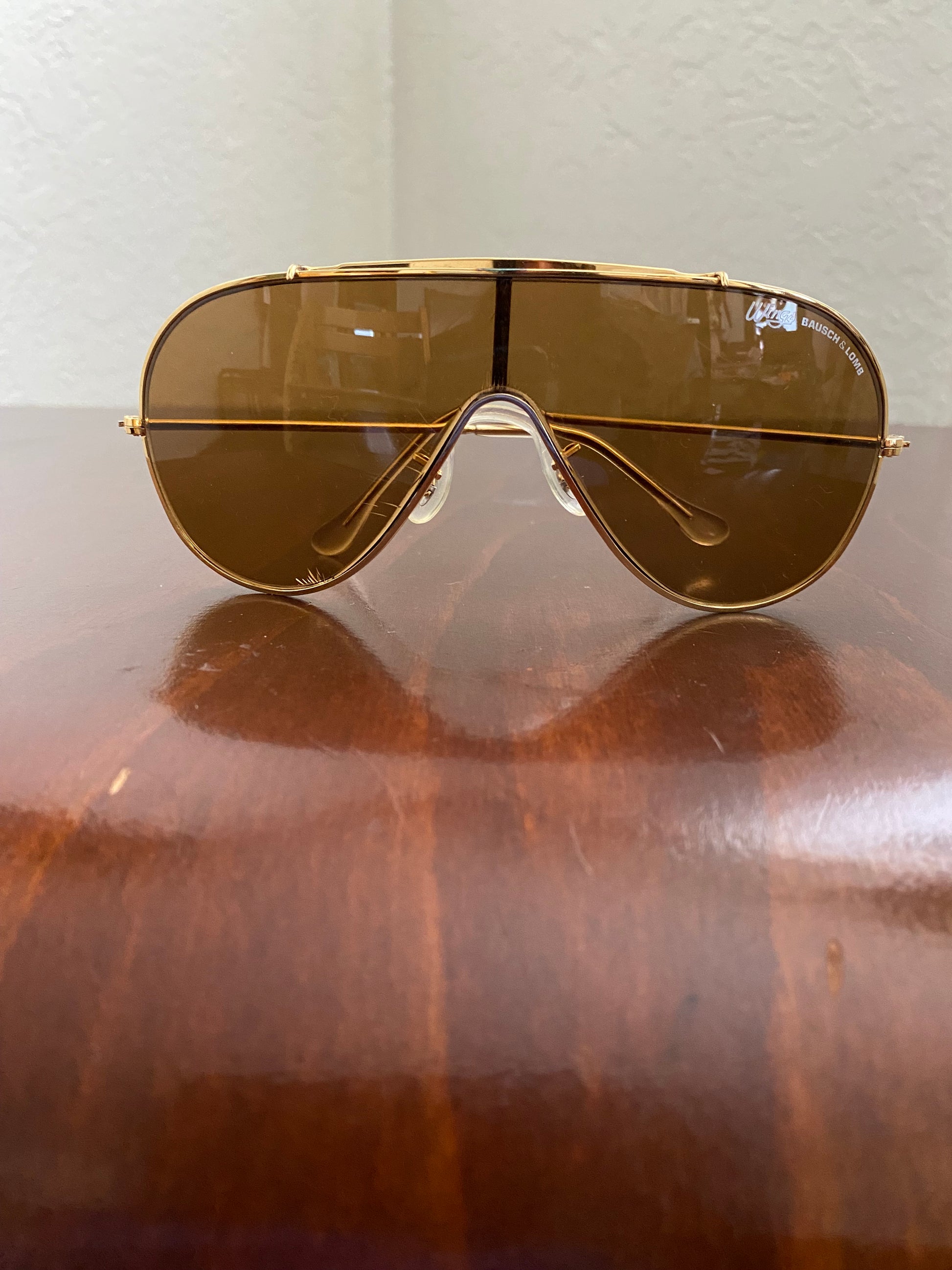 These authentic Bosch & Lomb aviator Wings sunglasses are a vintage collector's dream. With the original case, manuals, and lens cloth, you can own a piece of history from the 1960s. These sunglasses are in excellent condition, making them both a stylish and practical choice.