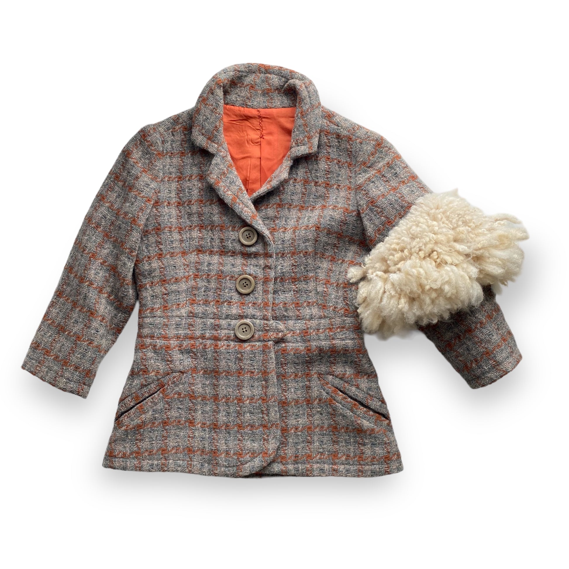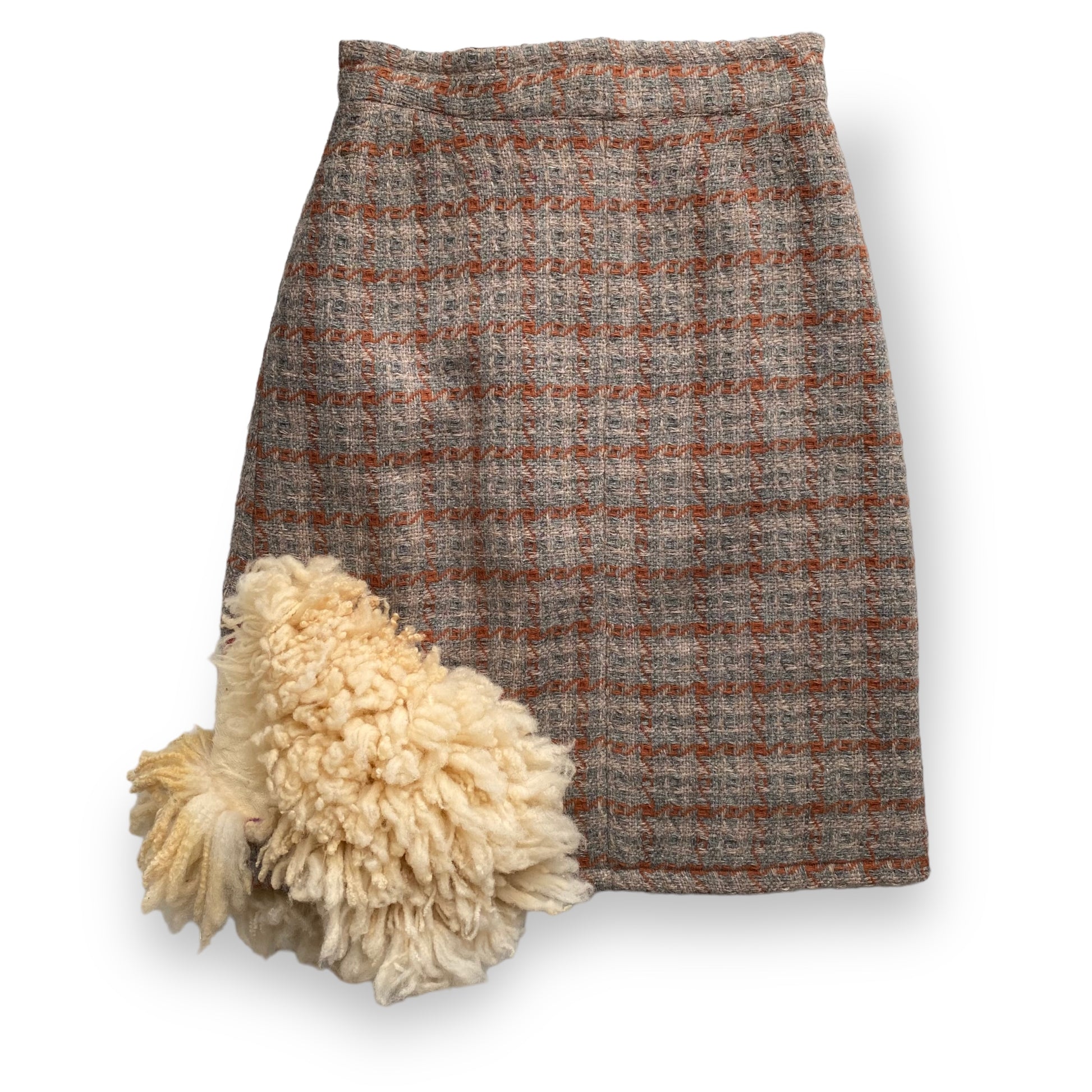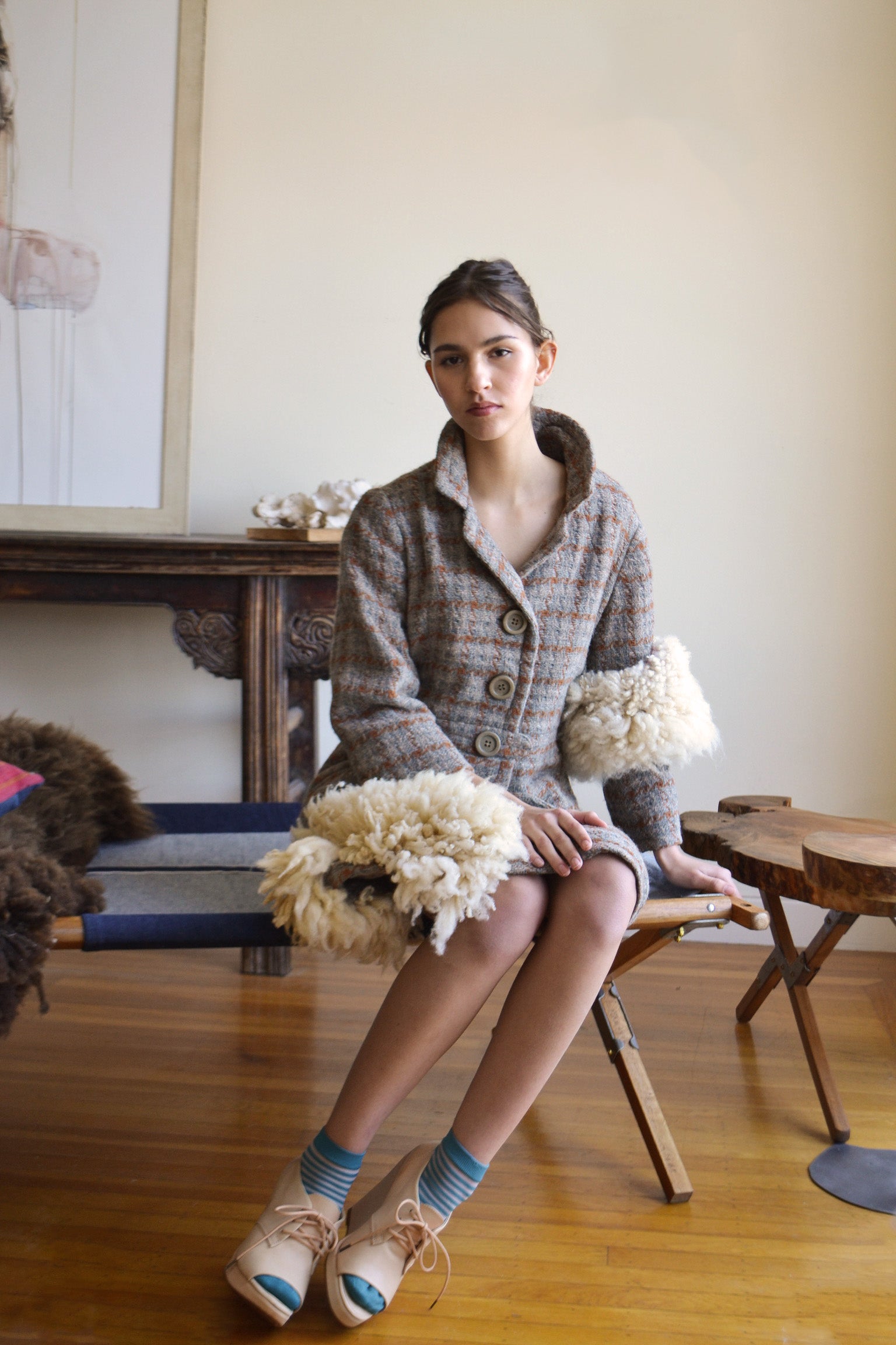 1950's Couture houndstooth wool jacket and skirt with Climate Beneficial™ shearling armband.