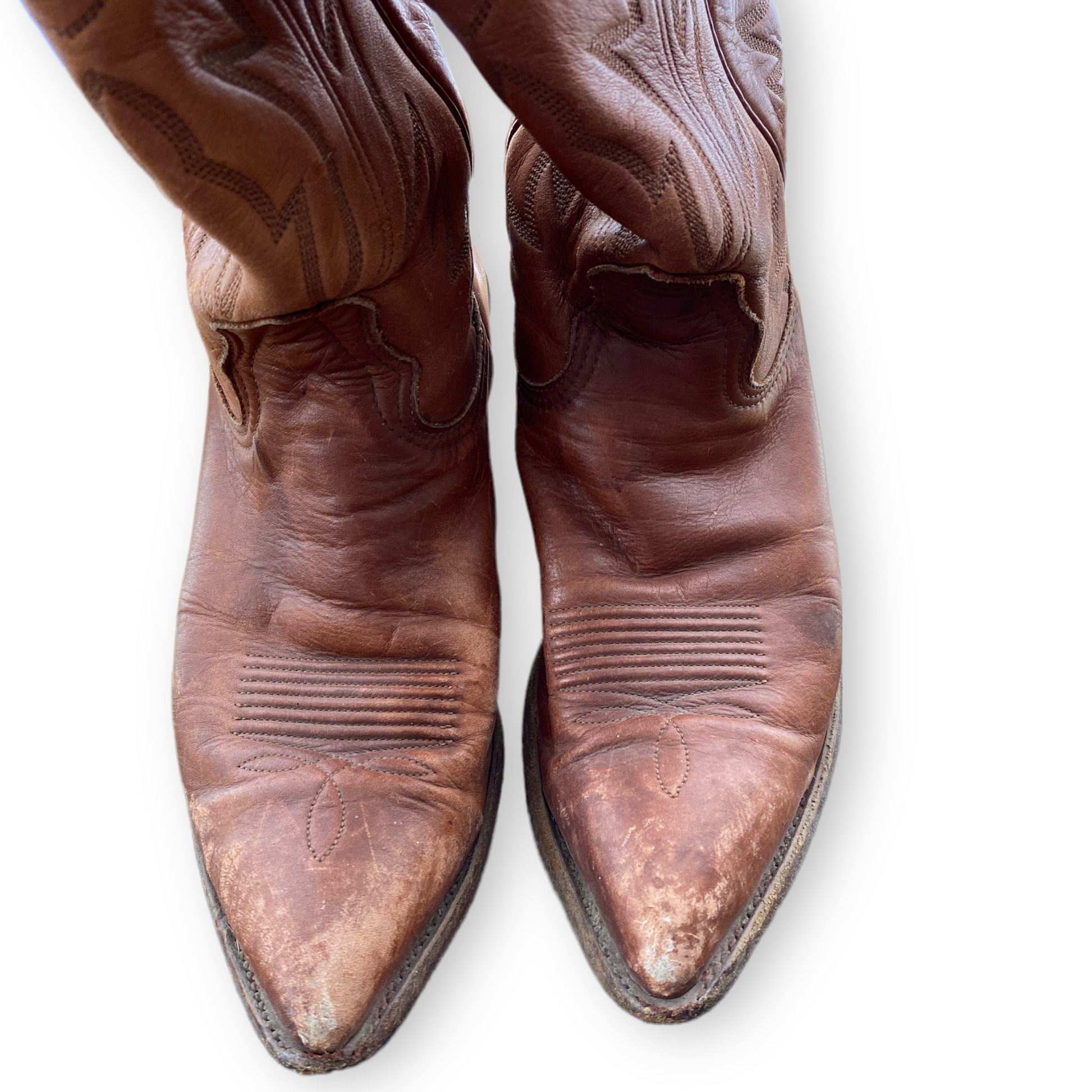 Beautiful patina from being a well-loved pair of boots. Rarer find as this pair is made in the USA
