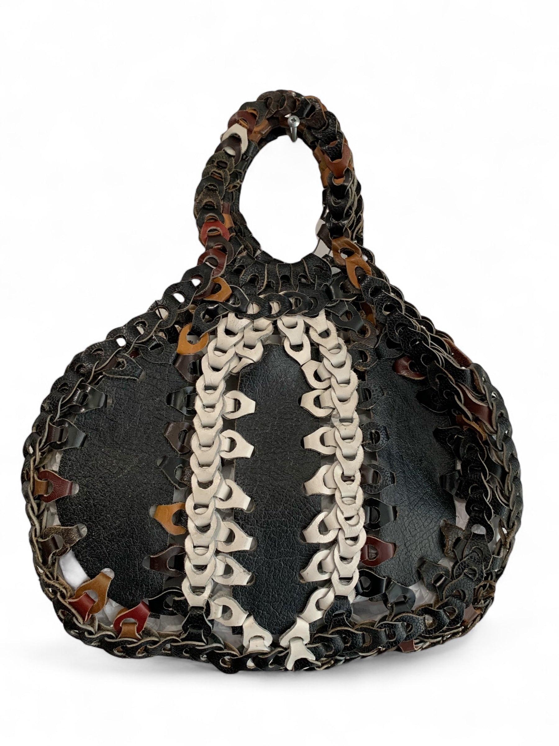 Vintage Chain link leather bag hobo purse 16" wide 12" tall bag, 6" handle