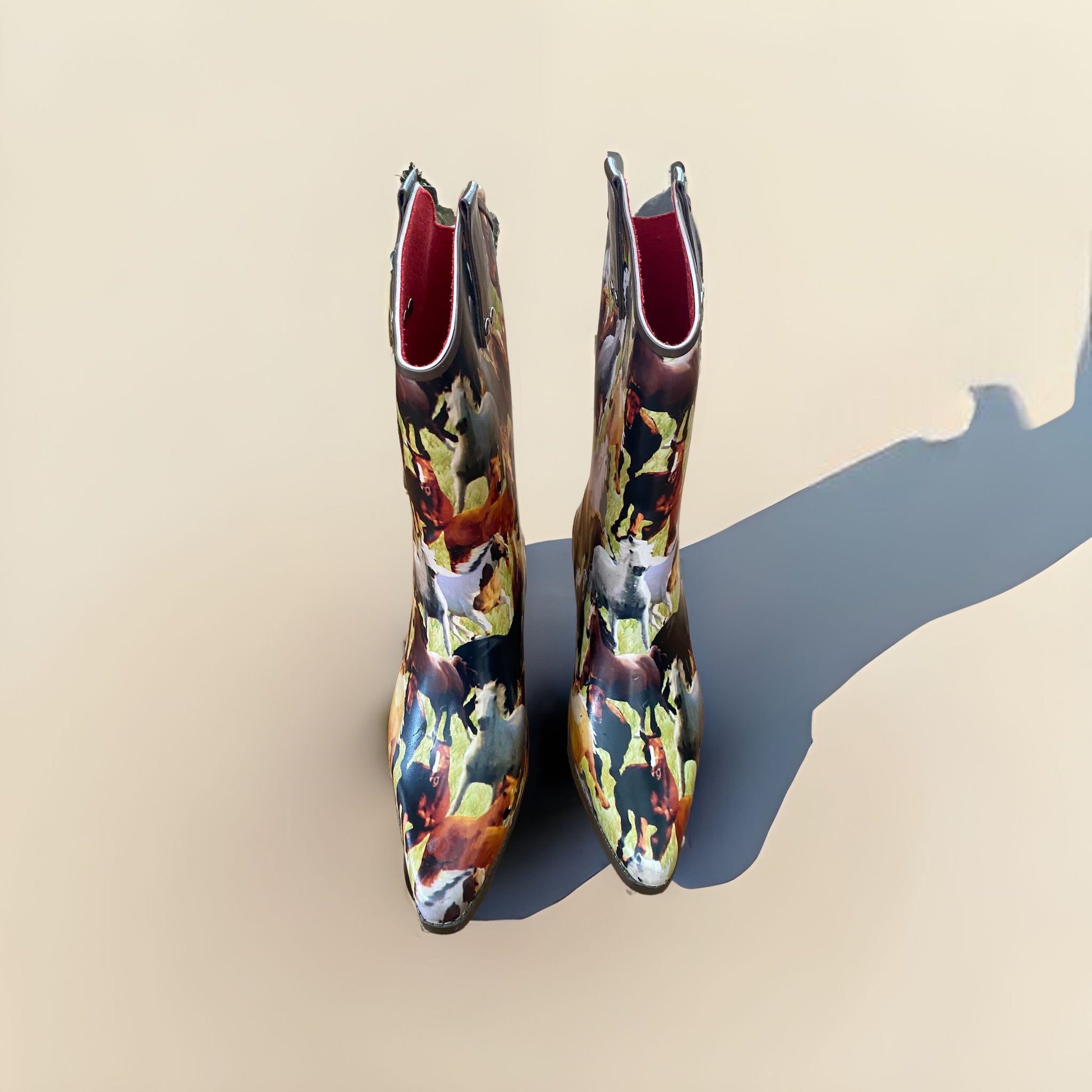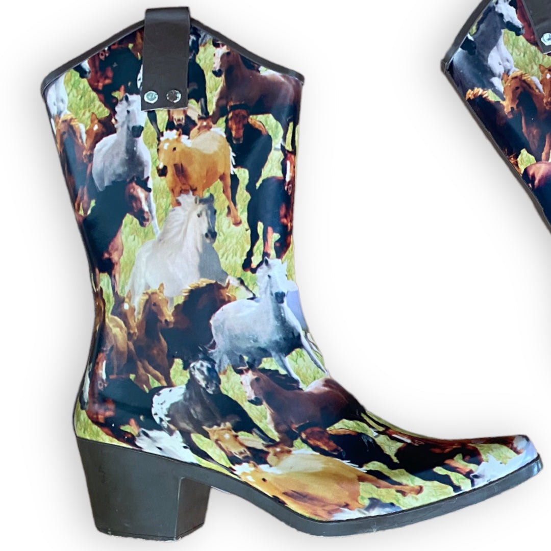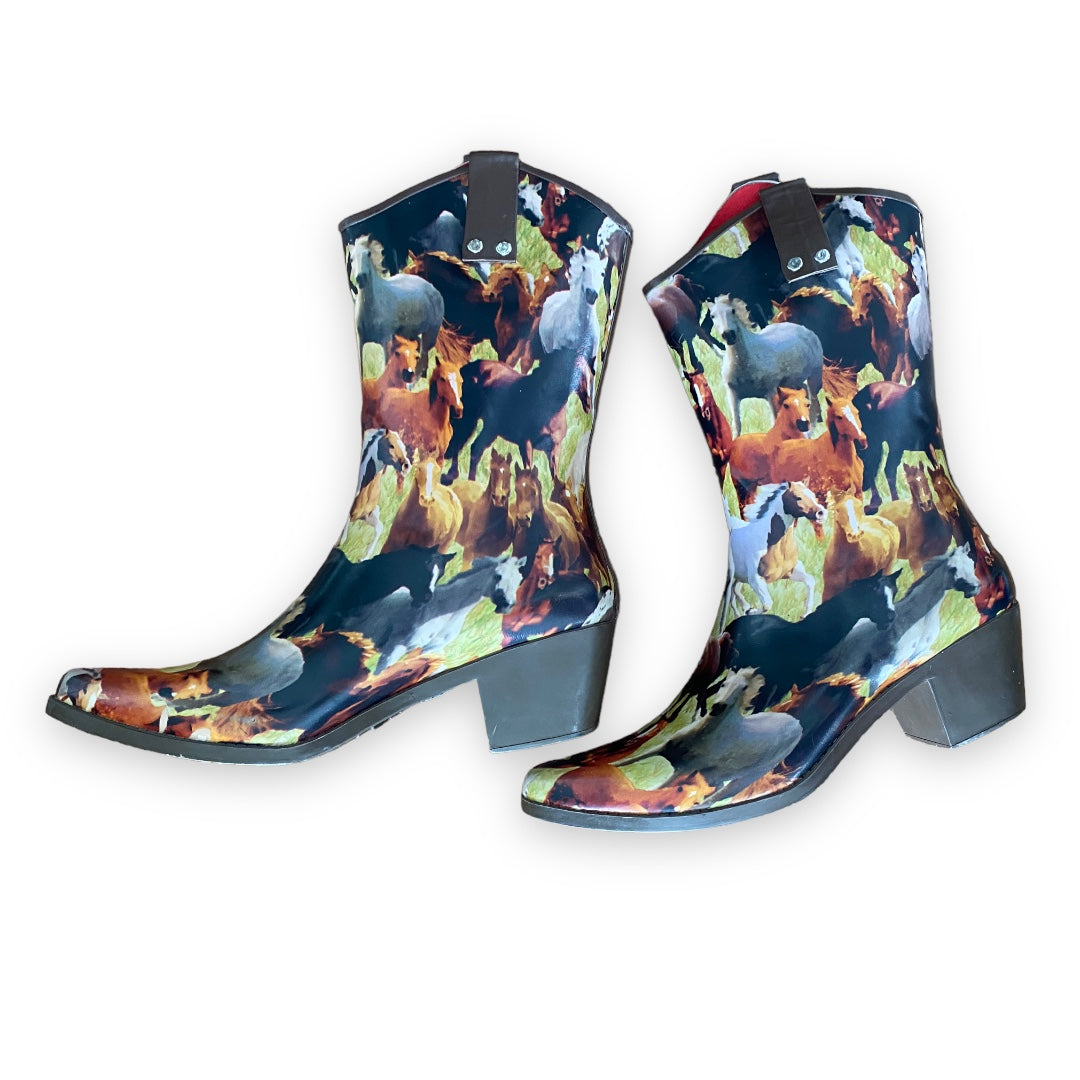 Henry Ferrera Horse Print Southwestern Rain Boots