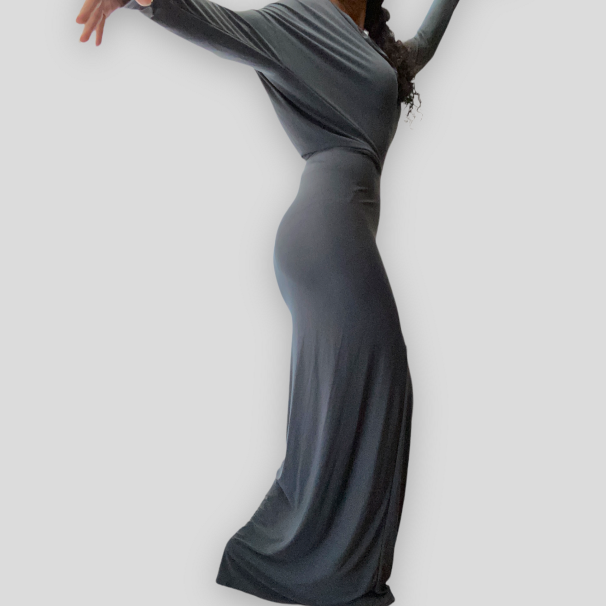 Think understated sexy from the early aughts. This dress style is all over the runways for spring. Stretchy