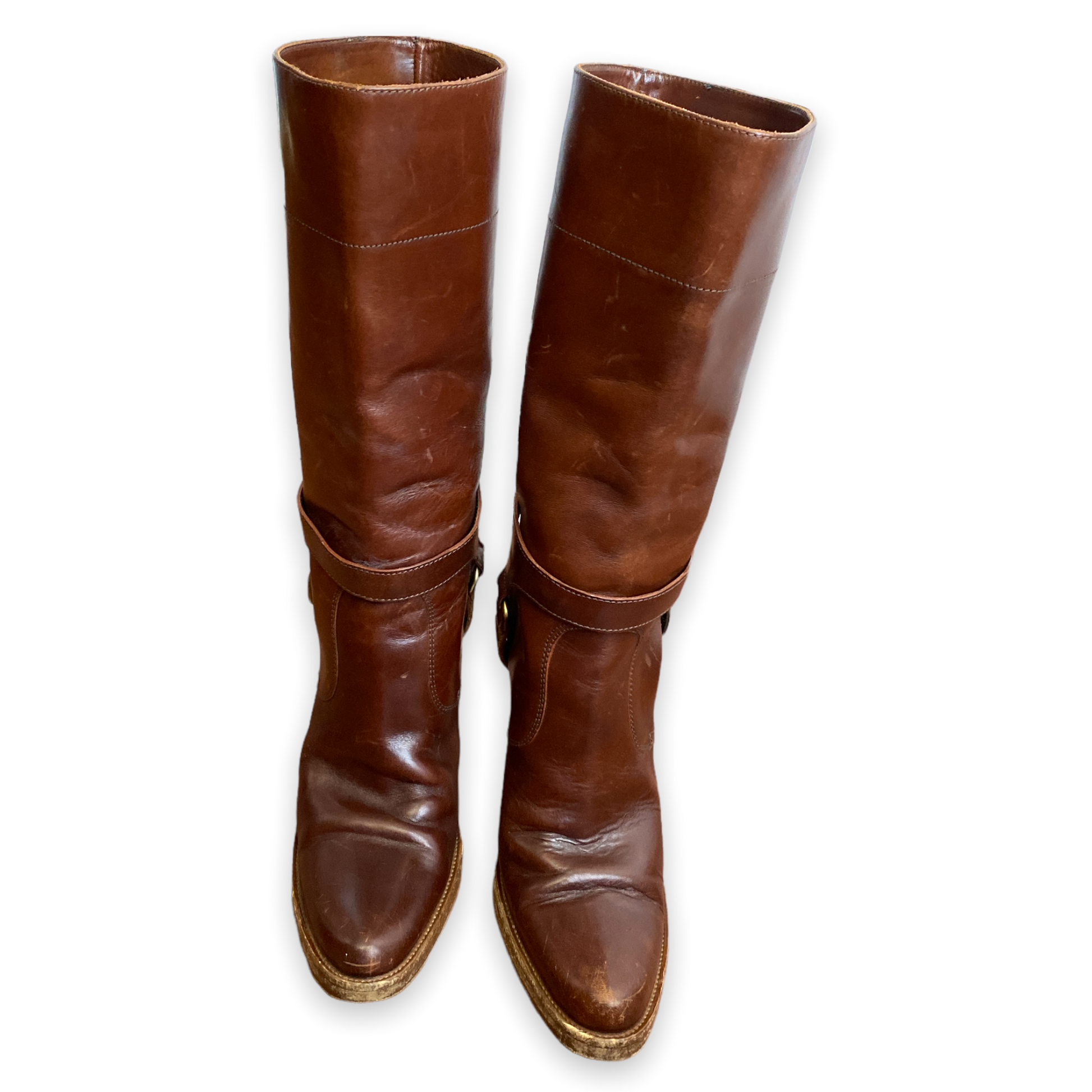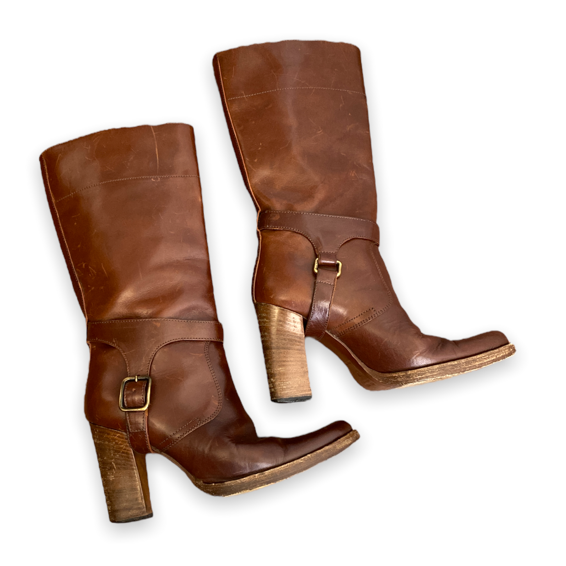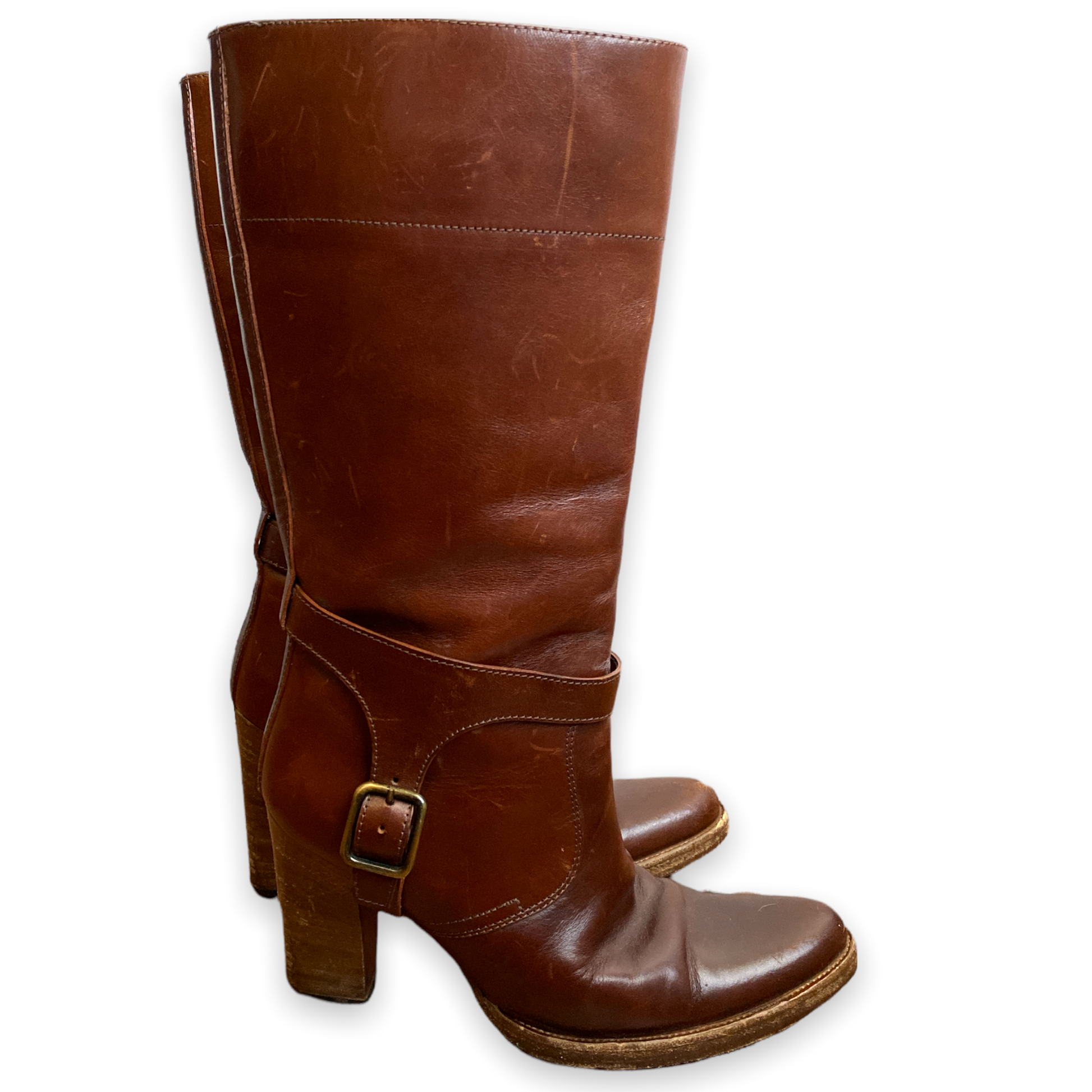 Gorgeous Miu Miu boots circa 2010s. Features a belted buckle ankle detail.