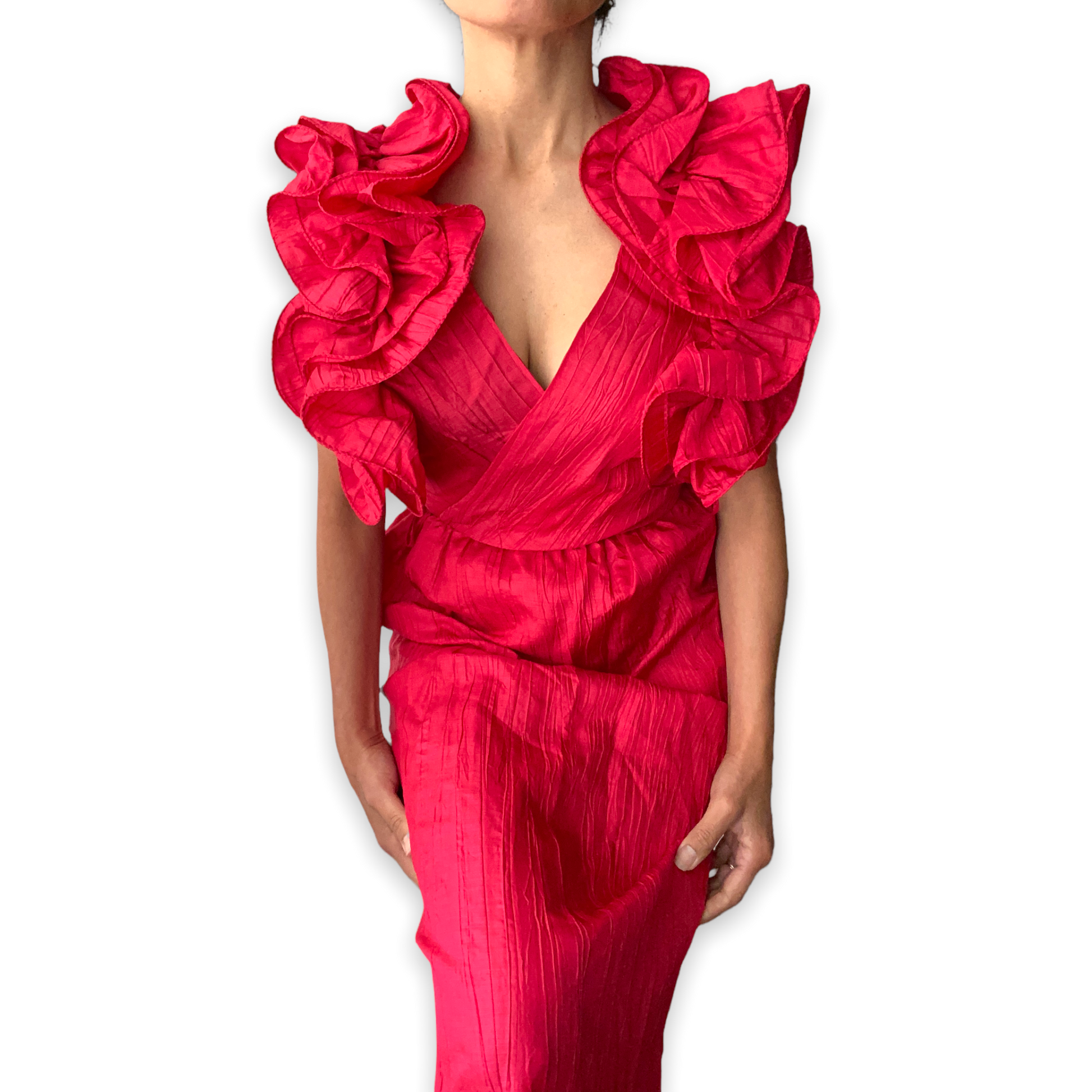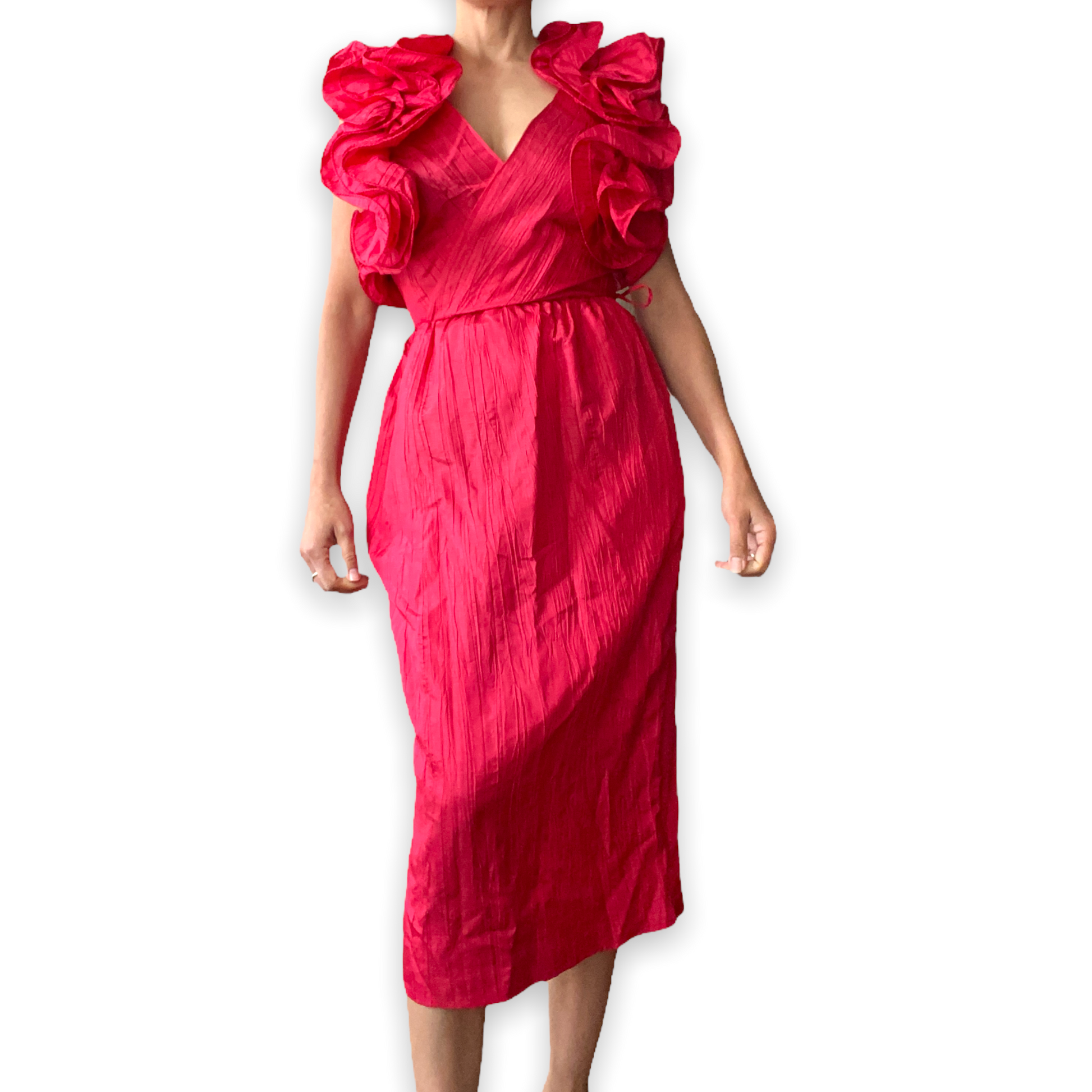 B.B. Collections Red Ruffled Sleeve Dress