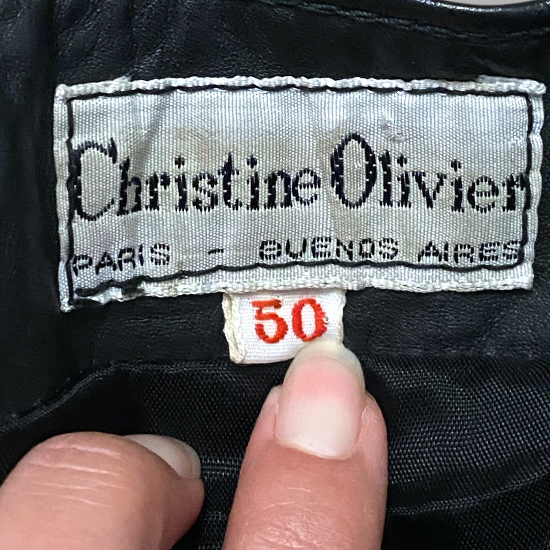 Description : Vintage leather skirt by Christine Olivier features a snakeskin panel with ruching at the sides. Has a fan pleating at the bottom. Lined
