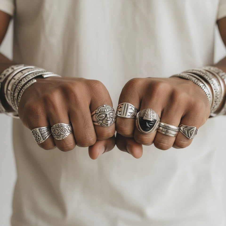 Olmec Warrior Head Onyx Head Sterling Silver Ring