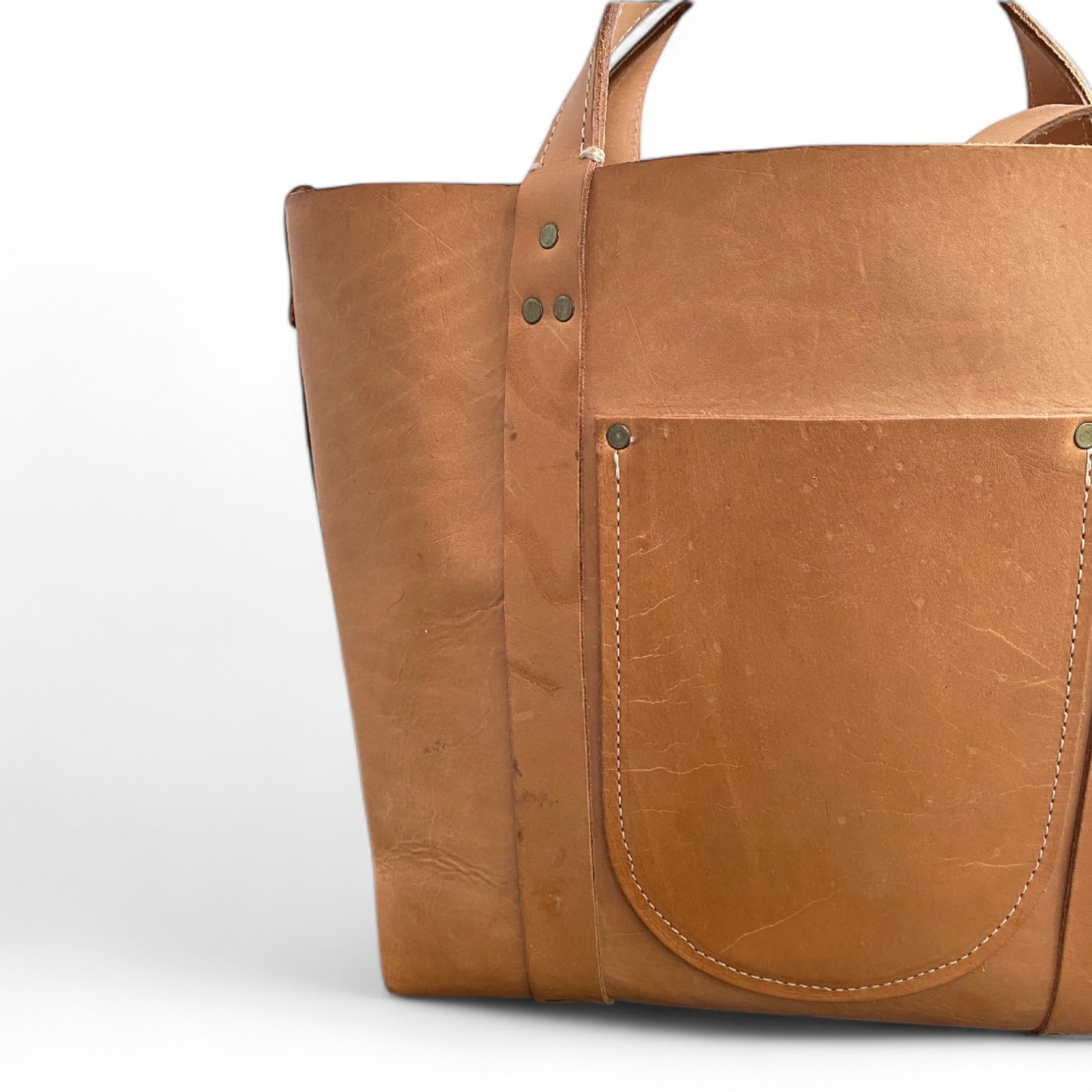 Handcrafted in Brazil by artisan brand Poglia, this classic leather bag is made from durable, full-grain leather that develops a beautiful patina over time. Designed with functionality in mind, it a roomy interior, exterior pockets, and hat holder straps on one side—perfect for adventures near and far. Comes with a removable, adjustable shoulder strap in matching leather.