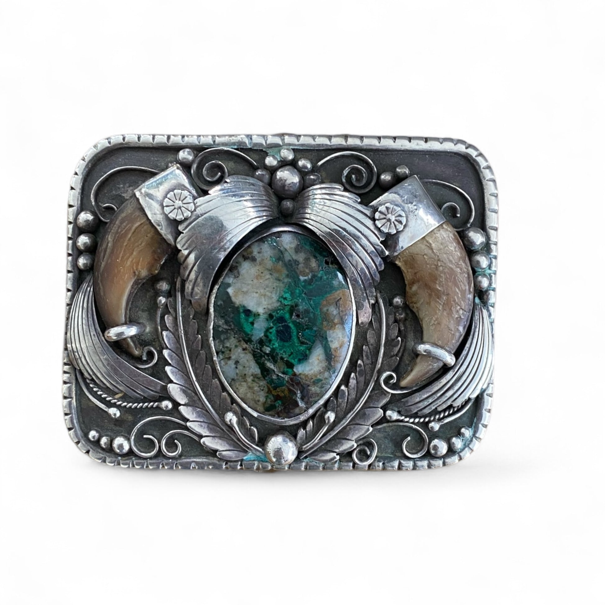 Collectible. Stamped with a W on the back. Two bear claws and turquoise stone. Belt not included.